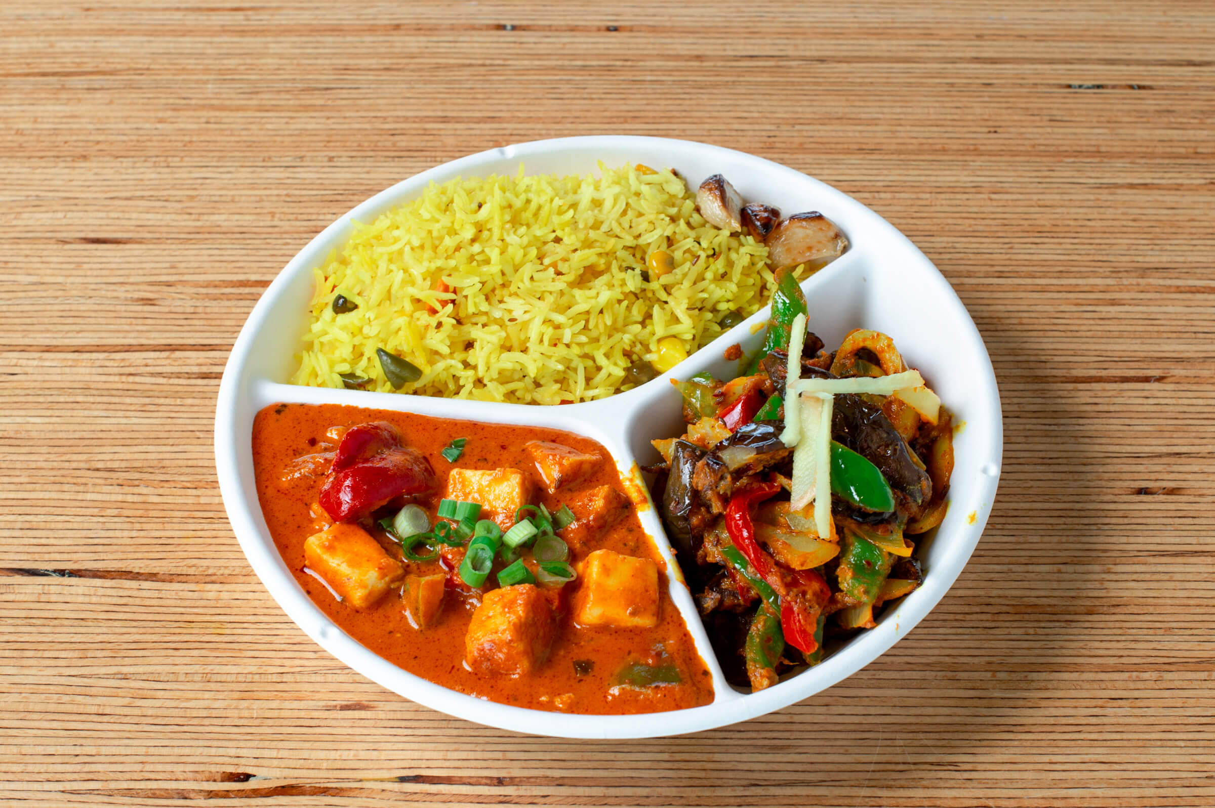 Two enticing dishes of your choice served with one rice or noodles.